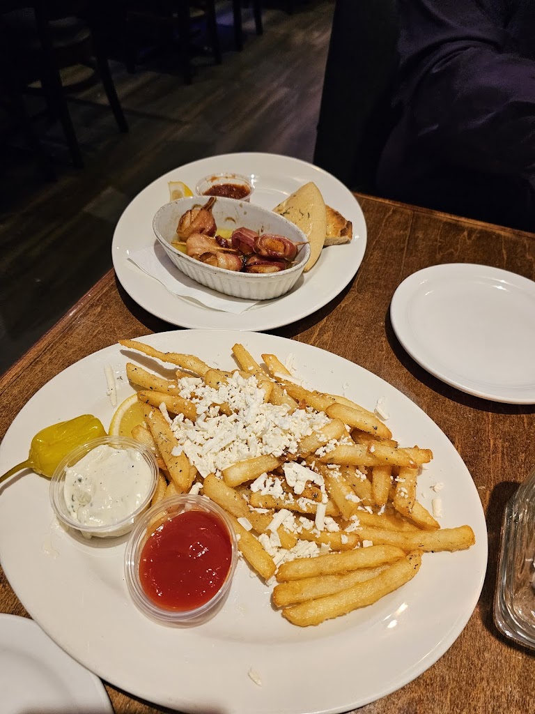 Had the bacon wrapped scallops they were very good, the lasagna not so much, way too much sauce, very greasy and salty, too bad. The service was fantastic though and I liked the restaurant, I knew I should have went with the souvlaki, next time...