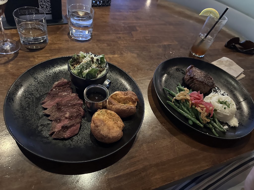 The most perfectly cooked steak, the 35 day dry age really does make their steaks melt in your mouth. The service was fantastic, and the food was quick and delicious. The lobster tail was not stringy or rubbery at all, and the sides all tasted fresh and delicious. It wasnt too loud or packed full of people so it was the perfect place for a mom and dad date night. Would highly recommend this place and we will be back for sure.
