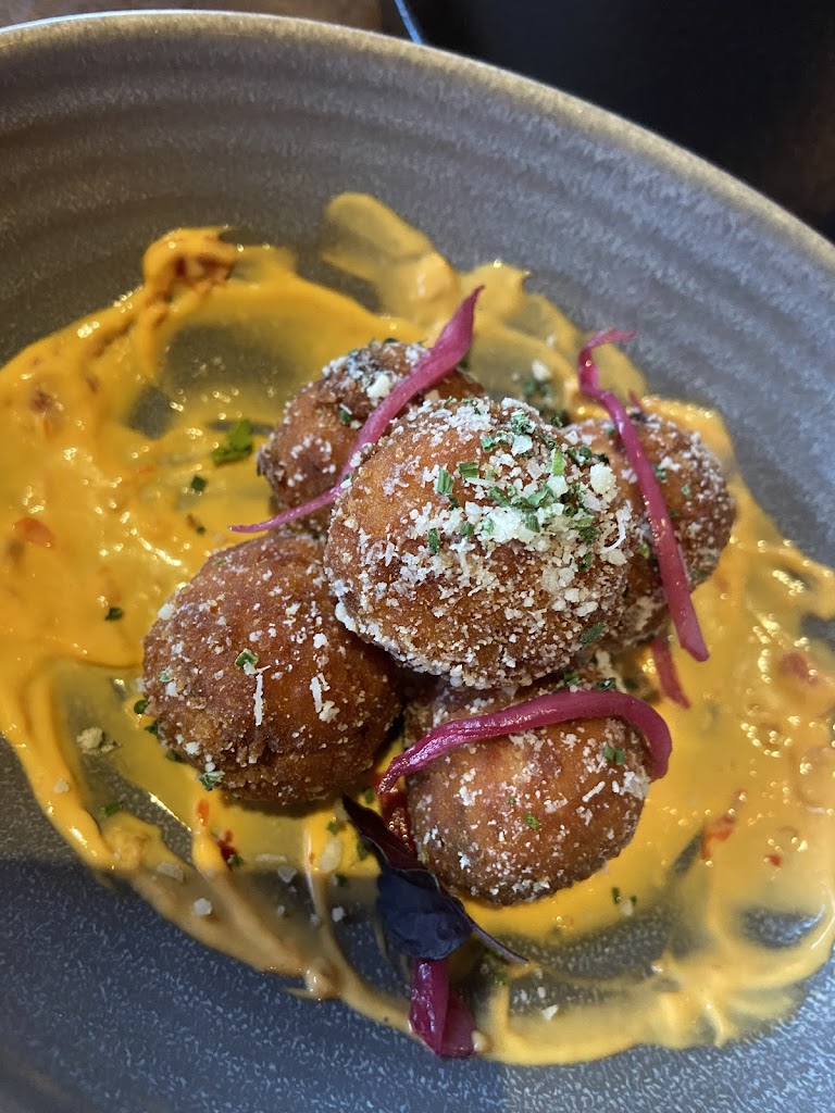 Great appetizer selection. We shared several and the mac and cheese appy was the BEST. Great lunch on the patio on a summer day.