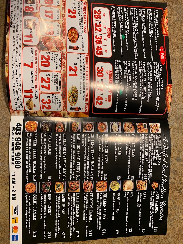 Truly an amazing restaurant. The best fish pakoras, biryani, curries and samosas in Airdrie and Calgary combined. The food has a home cooked and authentic Indian taste. Also they have the best pizzas in town! You will notice that the dough and bread are extremely fresh and soft! The owner and staff are very amicable, polite and responsible as well. I am quite lucky to have Perfect Pizza close to my home in Airdrie!