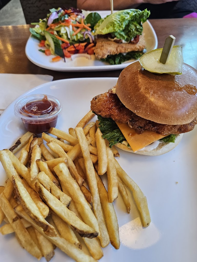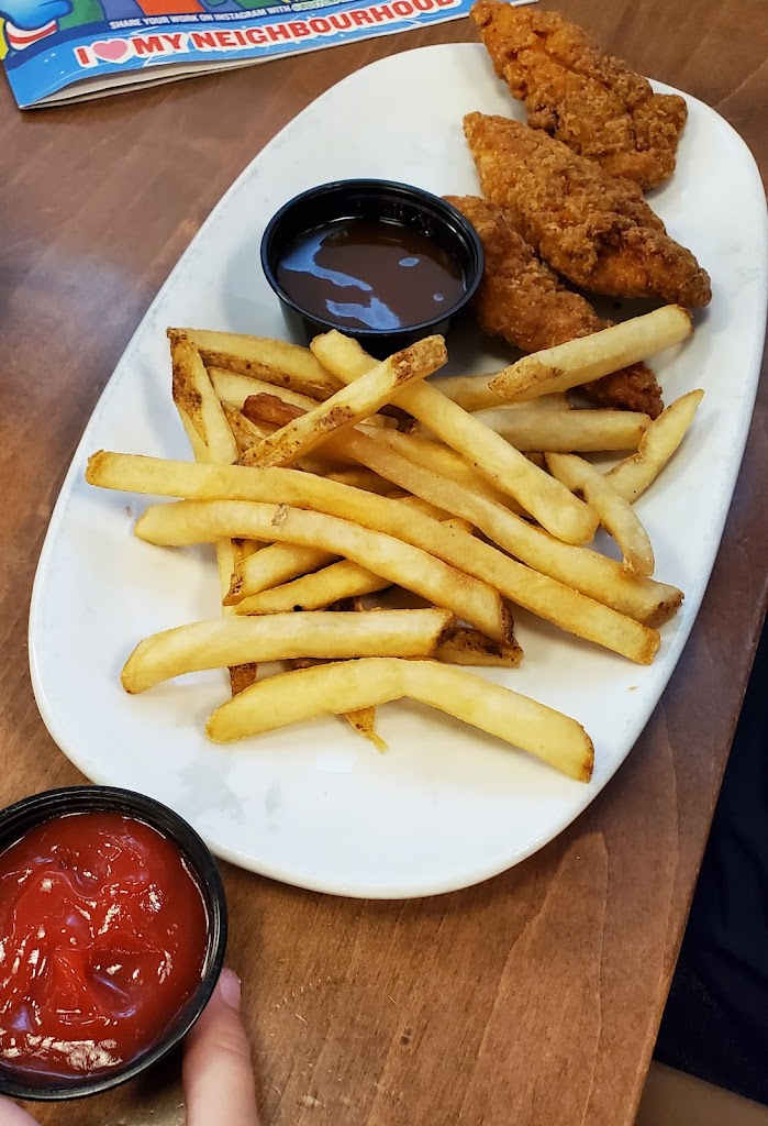 Food was good, decent price, service good, robot was cool. Kids card was a good deal. Fries were spicy tho. My kids didn't like them. Edit: Fries were not spicy at our last visit 👍 only complaint is that the Sandwiches don't come with enough fries. I can't imagine they cost much. Just fill the plate please :)