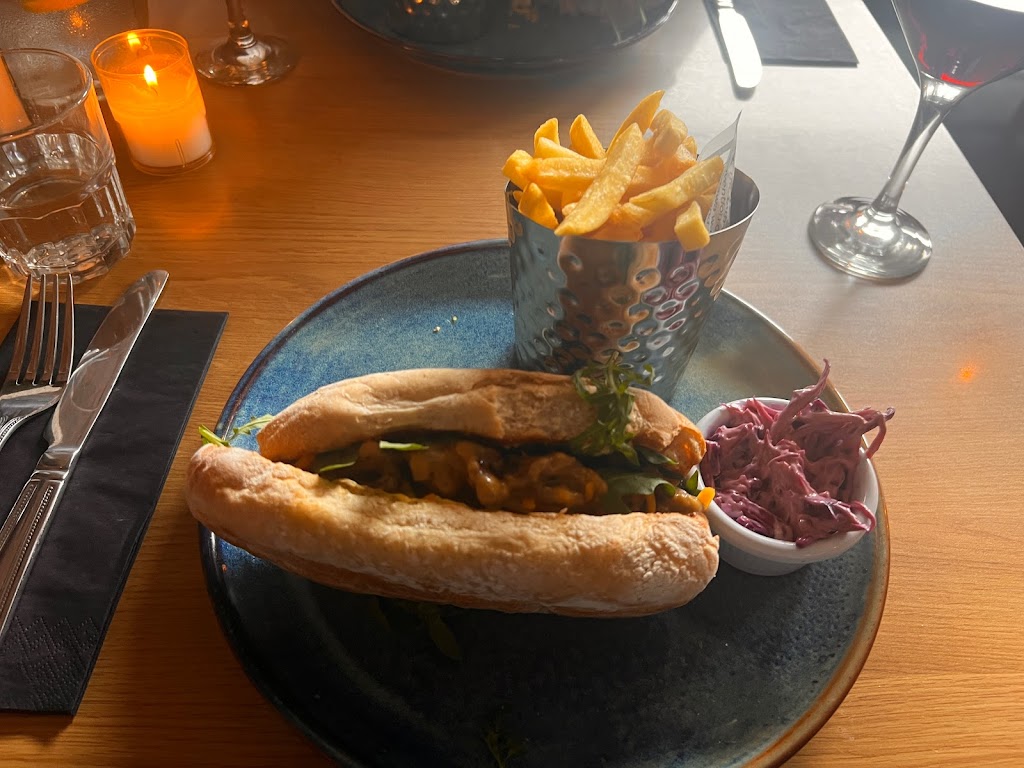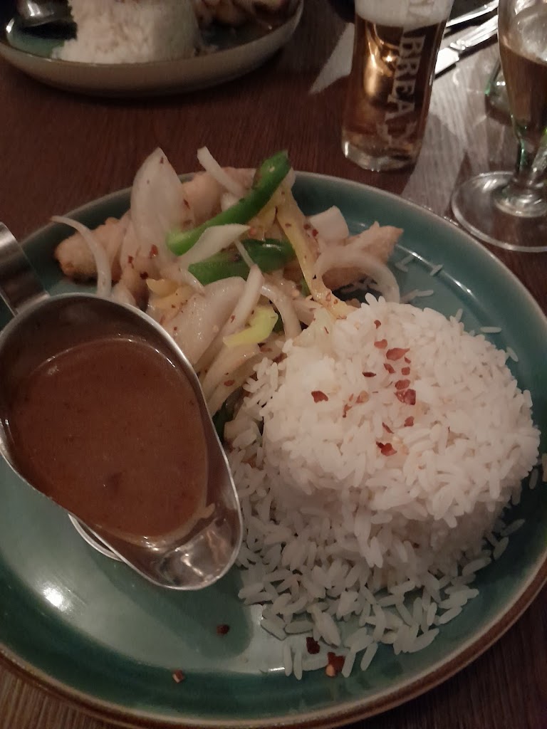Have went to this restaurant for the first time. Had a salt and chilli chicken tempura with curry sauce, and steak pie. Food was delicious, and the whole vibe felt festive, had little lights everywhere and it was cosy atmosphere. I would recommend this restaurant. P. S There is no parking so we just parked at the street near by Dietary restrictions: Gluten free and veggie options available