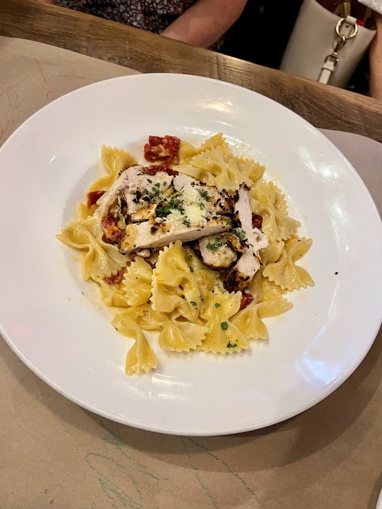 Our server Olivia was lovely, she recommended the asiago bow ties pasta and they were unbelievably delicious!!! Alongside our meal we were recommended the house wine which we were a little skeptical about but were pleasantly surprised when we tried! Overall great food and even better server would highly recommend checking out :)