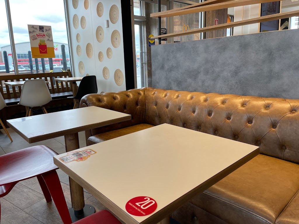 This a cute little MickeyDs. So clean. Service was great. Kids working there are on the ball. They even have a leather (pleather) couch as part of the seating. Food was normal fare.