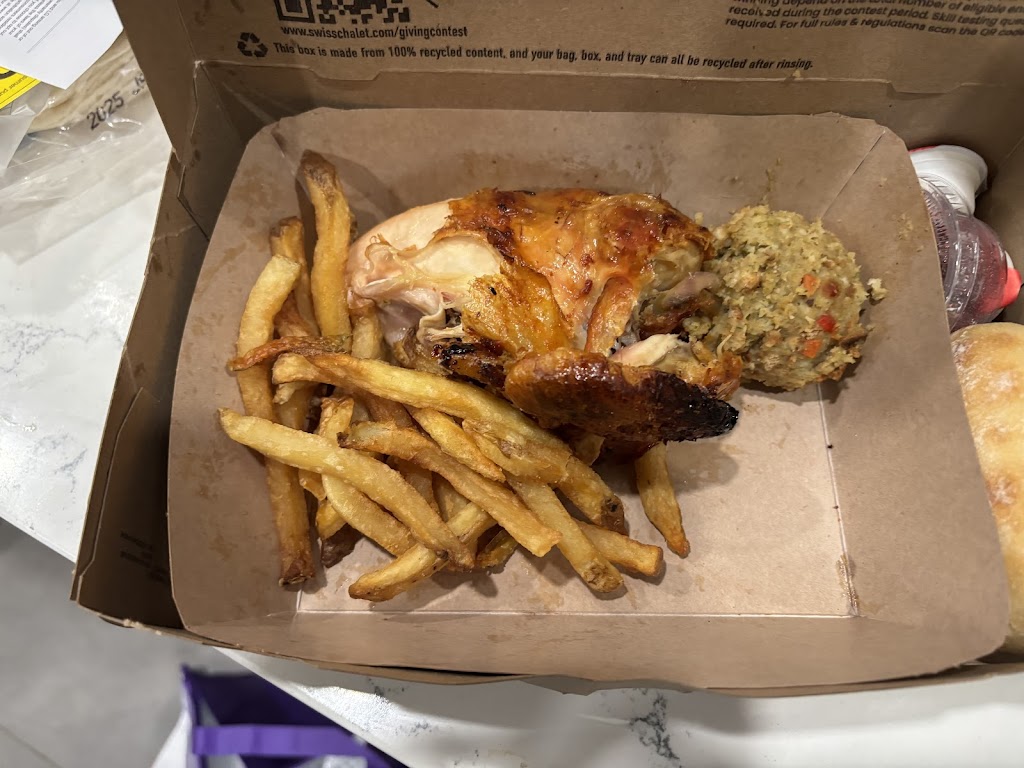 Great Swiss chalet. Really friendly staff. Jaylen was super helpful . Our waitress was also very lovely . Great service.