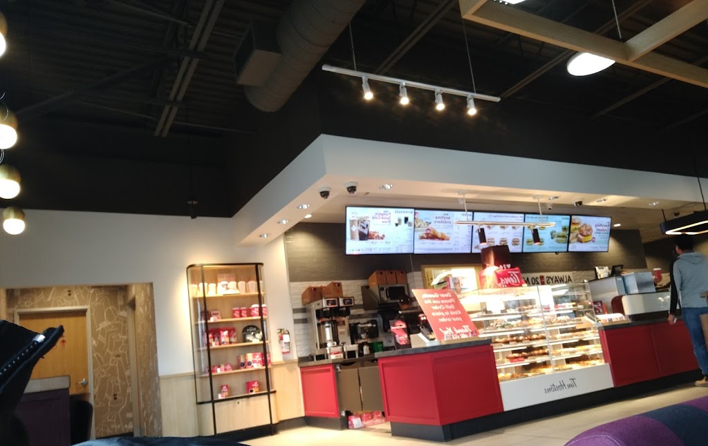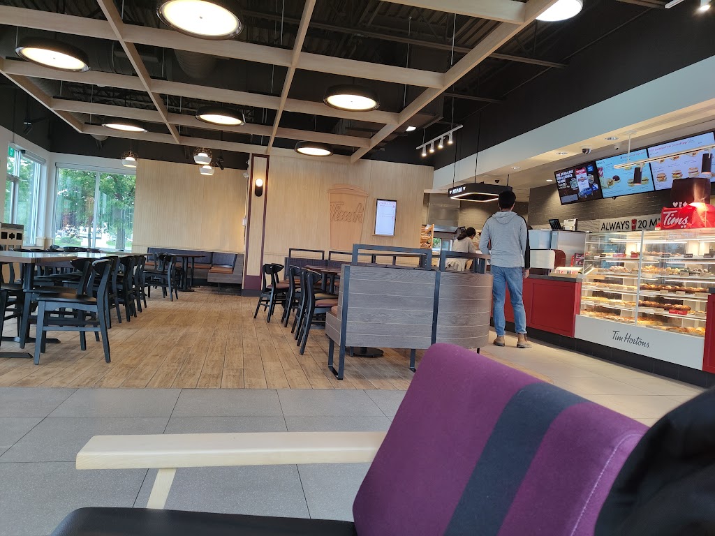 Wow. Best decor I've ever seen in a Tim's Horton's - very modern and clean looking. Hardly busy at 9am so bonus; no waiting. Just 1 star off; restrooms could just be a little cleaner but not bad.