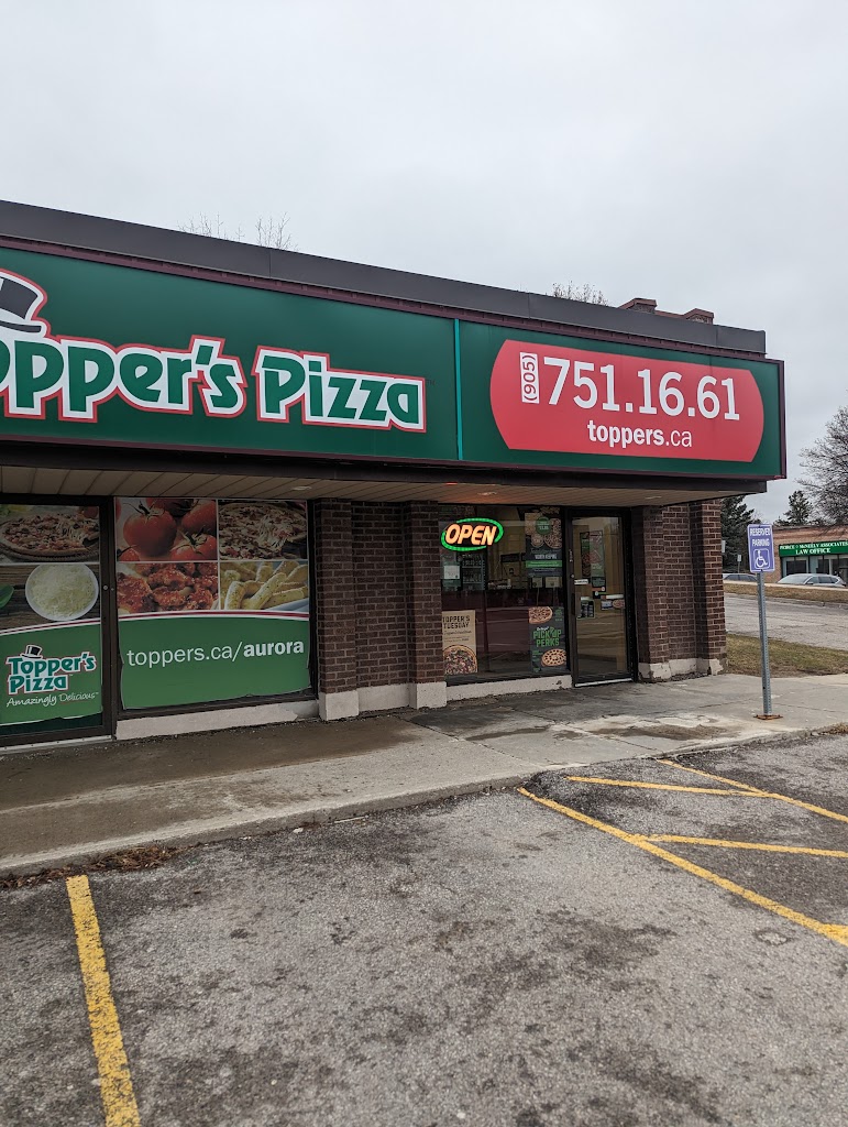 I am a huge Topper s fan of the Burlington and Milton locations. And I gave the Aurora location multiple second chances but they are so awful. Toppers was my #1 pizza chain and I can t eat from this location. Not only is the taste off but they ve messed up my order nearly every time. Incredibly disappointing.