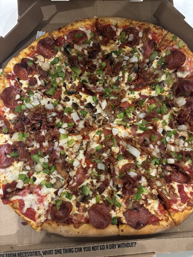 Amazing pizza choices, good service & fast delivery with friendly drivers.