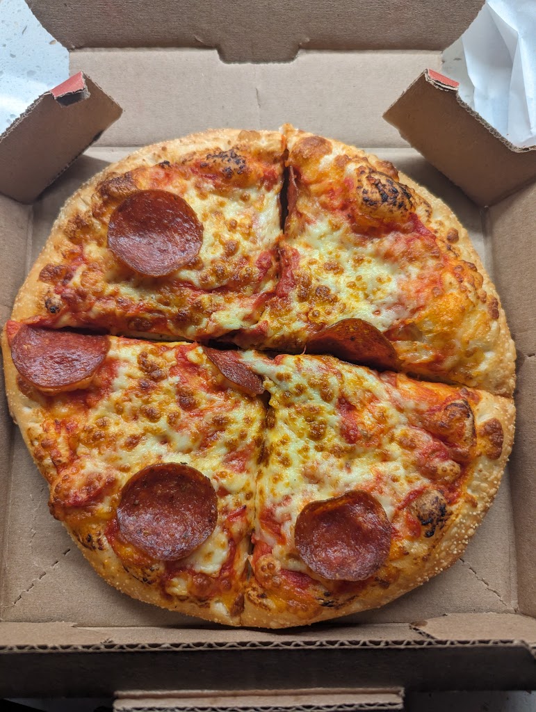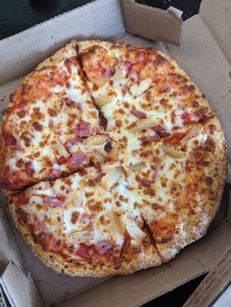 Garlic butter crust. That is all you need to know. The pizza was very tasty, toppings portions were good. You are paying more for the pizza compared to the other chains, but you can't compare. Good quality pizza. This place can get busy in the evening so be patient. There are in store specials. Social distancing measures in effect.