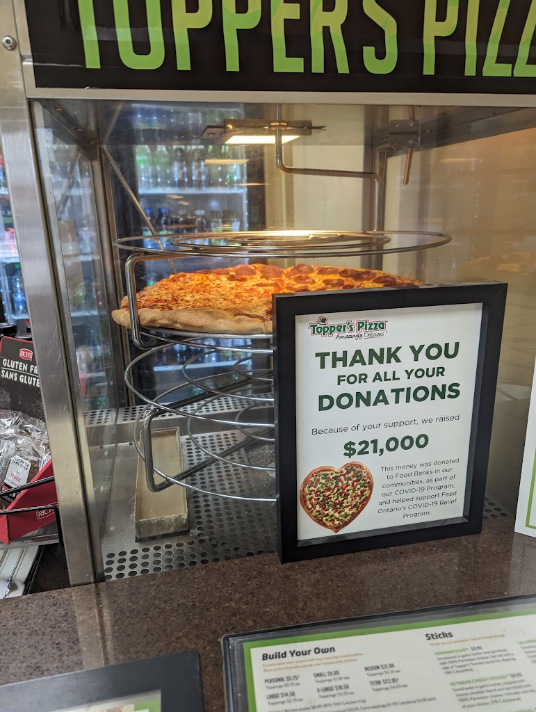 First time try Toppers Pizza when we drove through the town, way better than Pizza Hut, Pizza Pizza...... fresh topping, loaded Fata cheese, great in house sauce, very friendly staff. Heard this new location only opened few months, seems the owner does take care of their customers. Worth a ride to visit again.