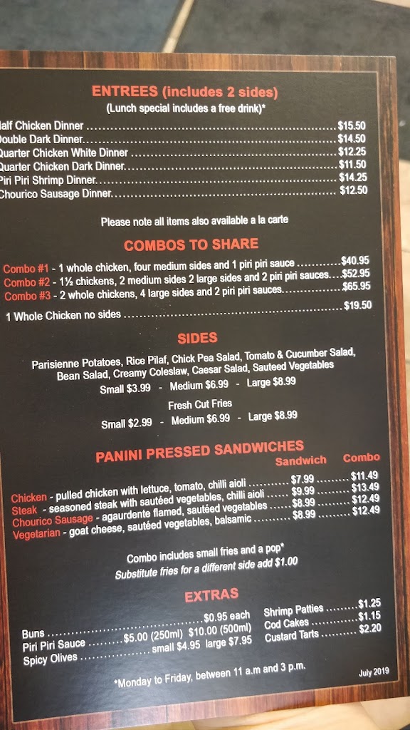 Absolutely different, the potatoes reheated, the chicken with a different flavor and the sauce was not piripiri (Portuguese sauce). Its a shame that the new owners damaged everything /// Absolutely different chicken, potatoes and sauce (not Portuguese any more) now is too expensive for the quality they served.