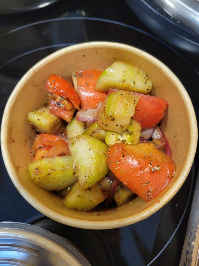 I had the flatten chicken with rice and chickpea salad. The food was great. I chose the hot sauce for my chicken and it was just the right level of hot for me. All in all was a great lunch.