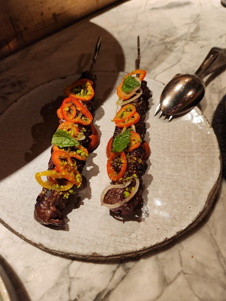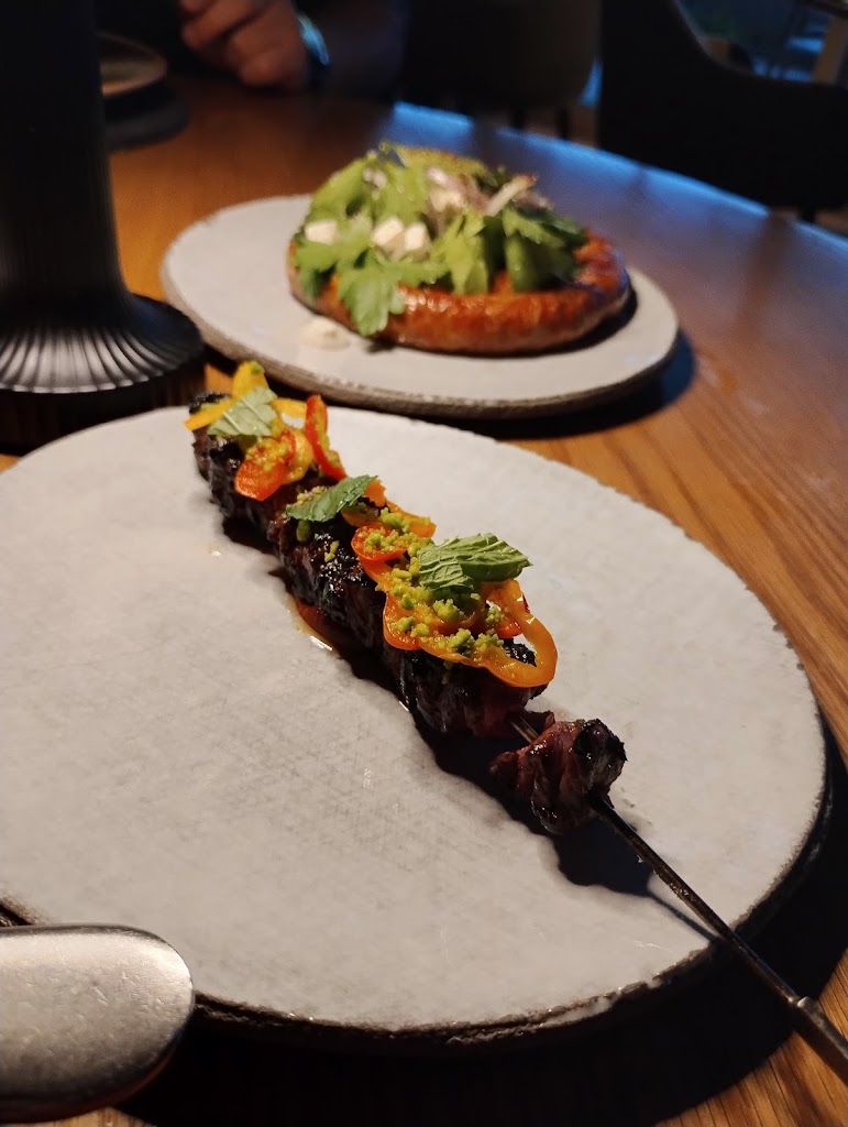 The food was exquisite. The service was amazing the atmosphere was really good too!! The veal tongue skewer was Devine. definitely a restaurant worth returning too. Food : 5/5