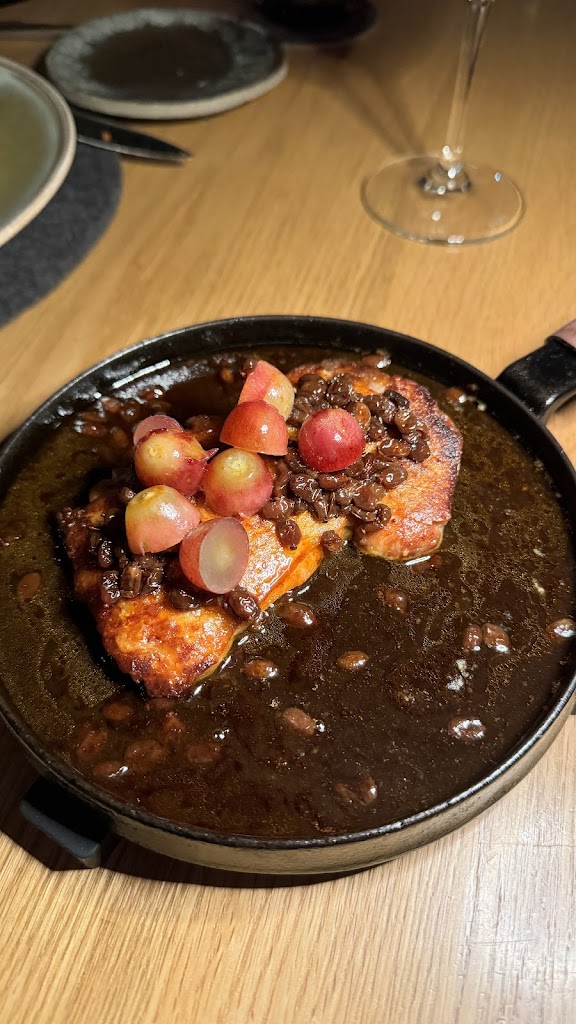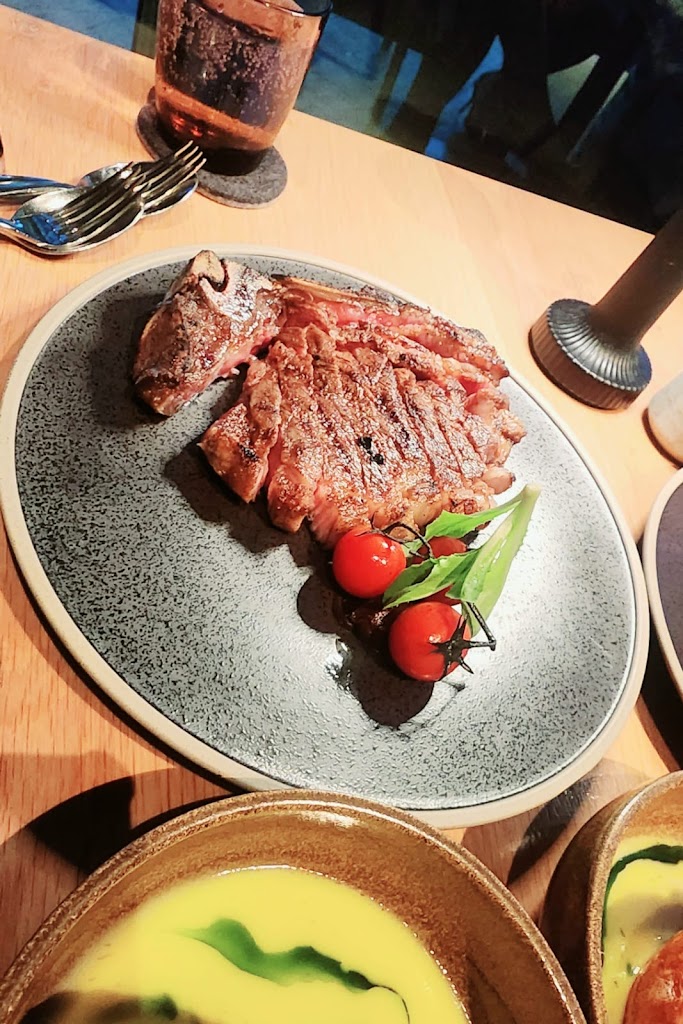 Went here to celebrate my birthday and it was quite a memorable experience. Upon entering the restaurant, you definitely feel like it was warm and inviting. The staff were very welcoming and friendly. We started the night with some black garlic bread, cooked tiger prawns and the “brick” chicken. The garlic bread was probably the better of the bunch with a very subtle but pleasant garlic taste. The prawns were not really anything special and the grapes with the chicken pairing were alright and nothing to really rave about. Next up was the octopus, spaghetti squash and sirloin steak 9+. The octopus had a nice charred flavour. I’m not the biggest fan of truffle, but truffle flavour in the spaghetti squash wasn’t too overpowering and was half decent. Then came the star of the night the sirloin steak. When people talk about steak that melts in your mouth, they are referring to this one. The flavour of the meat was something you dream of and the crispy charred exterior contrasted harmoniously with the buttery inside. This was paired with a rich and delicious green peppercorn sauce. It might seem like 200g is a little, but even sharing this in half with my partner was more than enough. Any more and the delight of it would’ve dissipated faster ice cubes on a hot summer day. We ended the night with perfumed fruits which was a nice refreshing and a staff brought out a tasty chocolate tart to top off the night. Overall, a pleasant experience. Might give some other dishes a try next time, but will be thinking of the sirloin for quite some time.