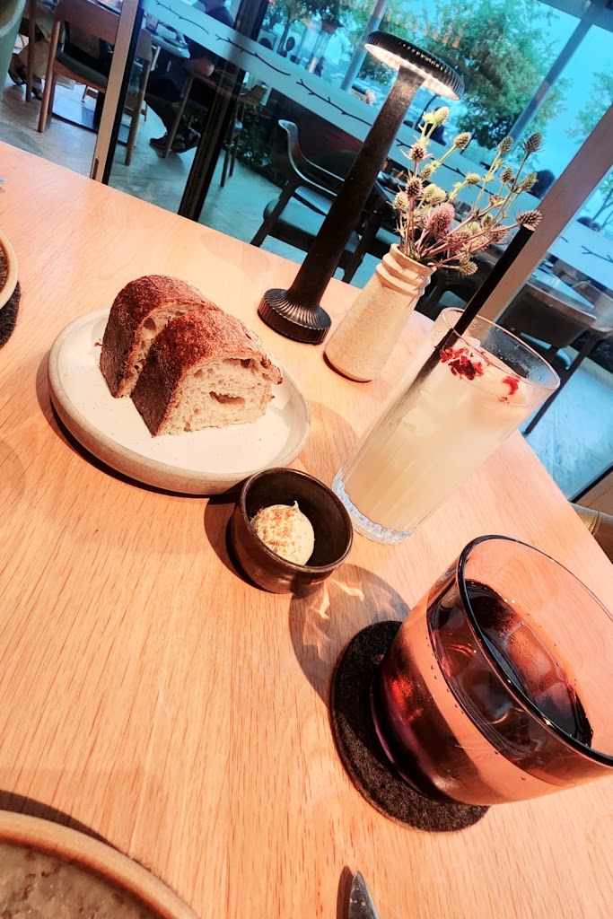 Had the pleasure of a front-row seat, watching the chefs work their magic during sunset hour. The Pioik sourdough with black garlic was a standout, the dessert was unique, and the wine pairing with the steak was chef's kiss. Great value, amazing service—we'll be back!
