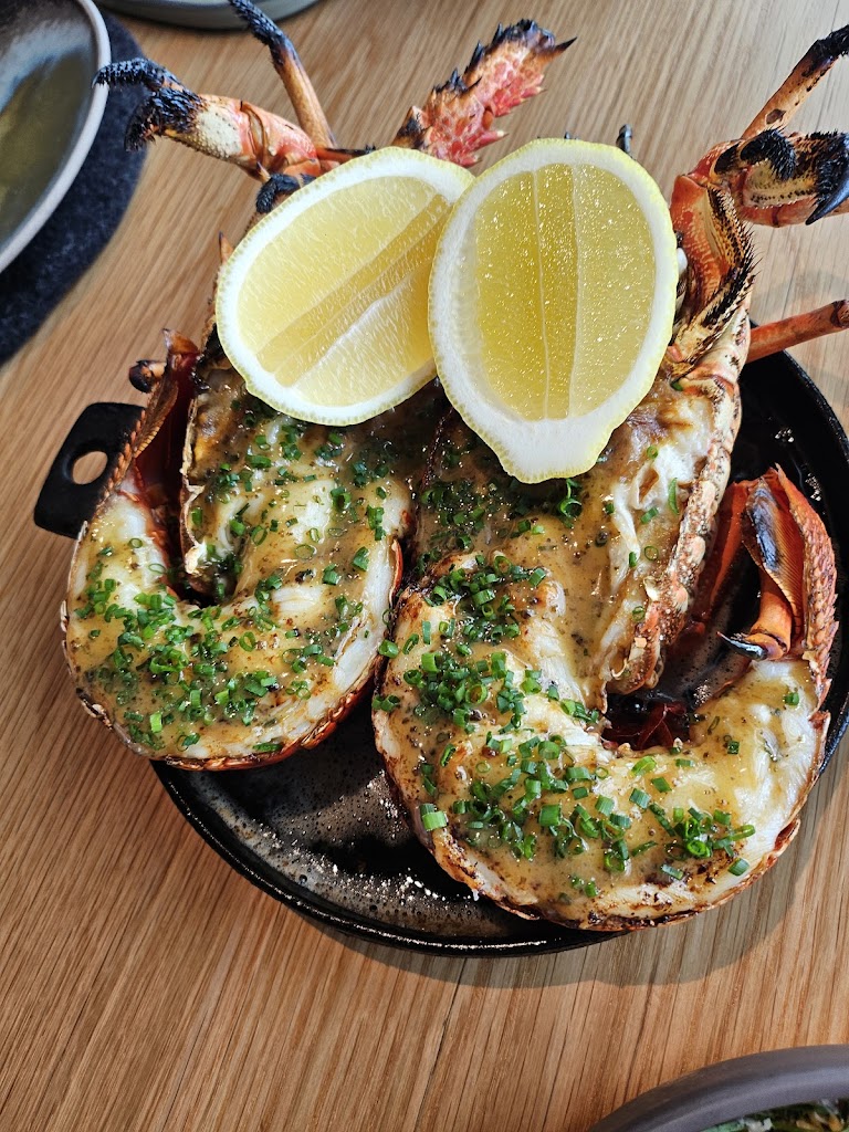 The outdoor seating is a big plus, especially on a nice day with a great view. The 'black' garlic bread intrigued me – it had a unique flavor, possibly with some fermented black beans mixed in. It was something new and interesting! The Australian lobster was fantastic, super fresh and perfectly cooked. As for the steak, it was Wagyu and cooked medium-rare, which kept it tender and flavorful without being too greasy. The lamb chops were also quite good. Overall, it was a pleasant experience with some standout dishes.