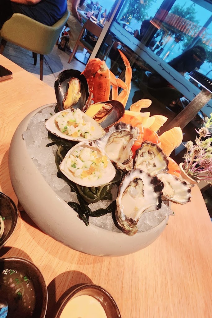 Definitely one of the better restaurants in crown!! Service was great, love the sunset view and overall food was good, nothing was bad Its pricey but its expected! FAVS: - steak tartare, brioche fingers, i LOVED this snack size umami treats - maremma spiced duck, im usually picky with duck but this was really good! - king prawns, super flavourful and the spices for it also good: - raw fish plate, super fresh - grilled octopus, loved the flavours for this and it wasnt rubbery, well cooked - rib eye butchers cut (super well cooked and juicy but ) - lemon meringue dessert, light and citrusy goodness was just okay: - sourdough, unfortunately tasted burnt - hasselback potato, had high expectations but sadly my visit it felt a bit undercooked? It wasnt as salty or as crispy as id imagined it be