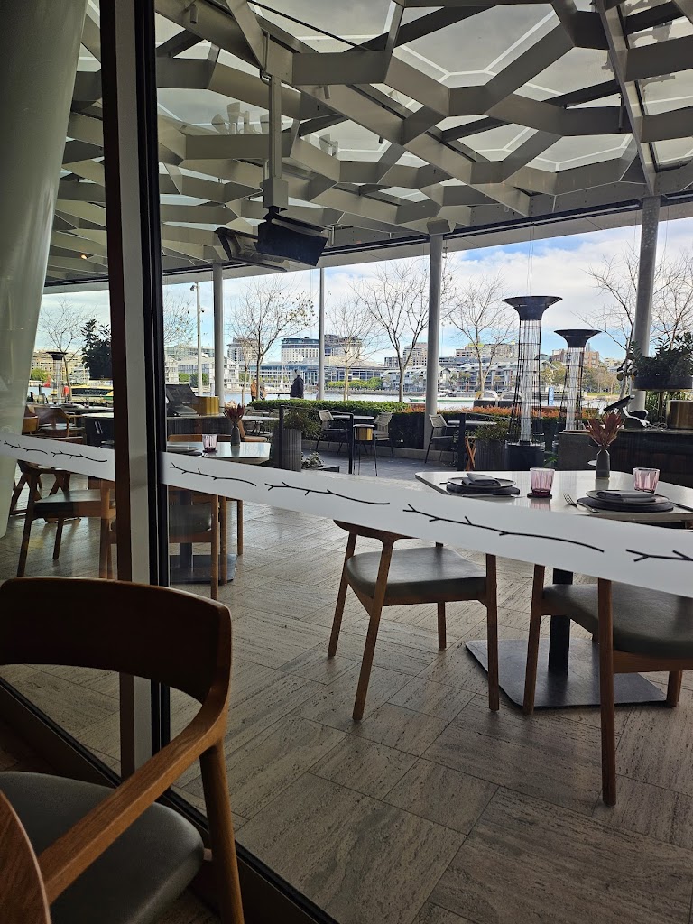 A Great place to dine with great food and a reasonable wine list with a knowledgeable som. The views and atmosphere is lovely. Biggest win -> smokey iron bark emanating throughout barangaroo thay can be tasted on the steak which was perfectly cooked Biggest loss -> wasting food as you cannot take your leftovers Be aware that they do not allow you to take steak left overs. We found this to be surprising because we ordered a big beautiful steak and had to leave around 75% of it. This actually ruined the dinner because it felt it is wrong: the staff made up for it but the policy is still a massive error in judgement that needs to be rectified. Poor staff for having to deal with this on the regular. Five stars other than that and we will definitely be back!!