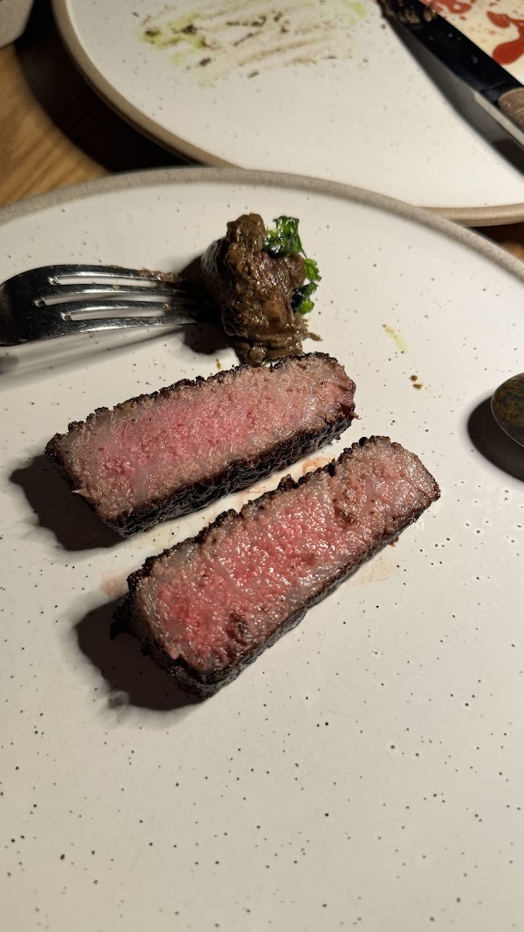 Waygu skewers and mussels were excellent. The halumi starter beautiful. The black market T bone perfectly charred and tender. The red wine jus and peppercorn sauce added to the umami feel. The best hasselback potatoes. Attentive staff. Fun atmosphere. Recommended.