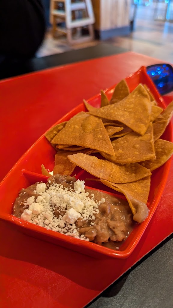 When we arrived it took a very long time to get drinks, also we had to ask for complimentary chips and salsa as they never offered us .seemed we were chasing the waiter down a lot ..Food was good more sauces needed on plates .. Service needs work.