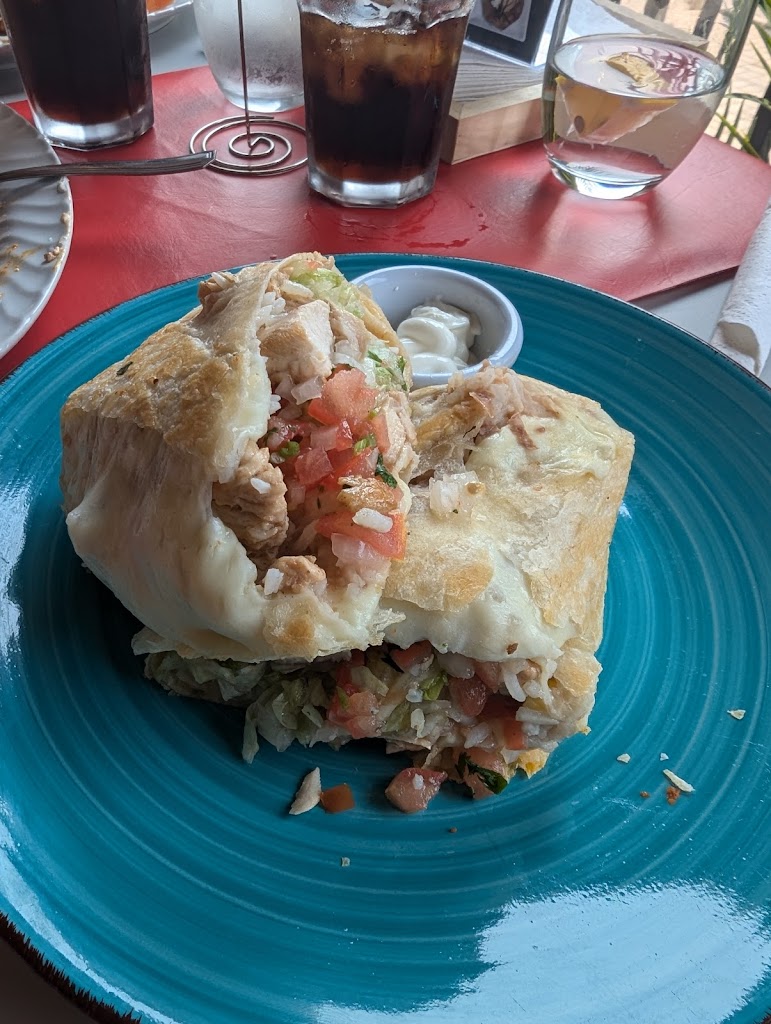 Very slow service - our table of 5 had to ask for water at least 3 times Lime margaritas were delicious food was very bland/dry - had the chicken burrito and it was very dry - needed some sauce to be served with it . We were hoping for better as we love Mexican Restaurant is in a great location and will be great in the summer being right by the water front - just wish the food was better.