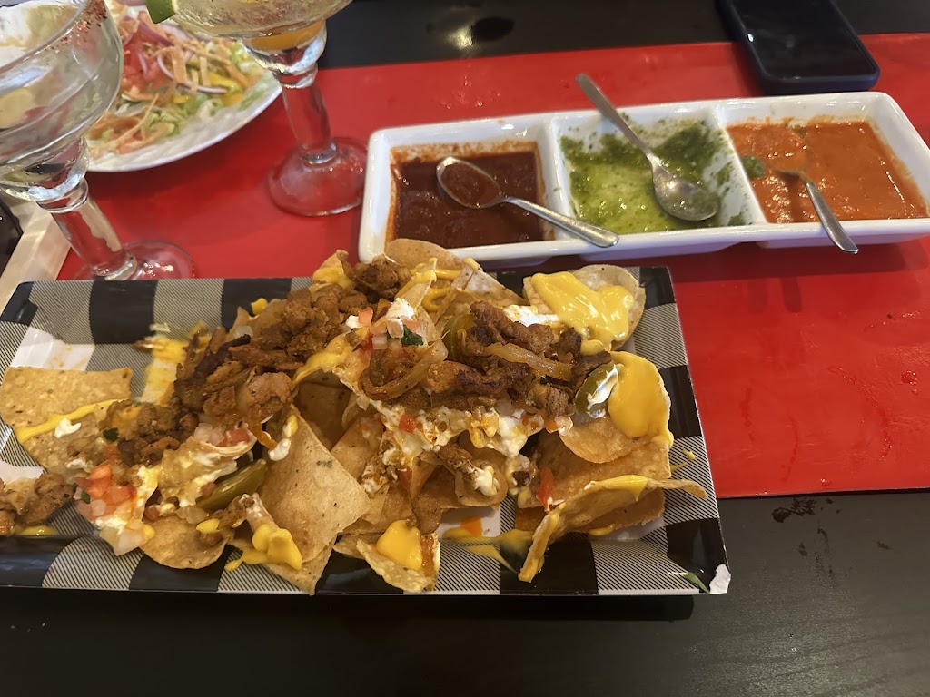 Most of the food was really good, the tacos, quasadilas etc ! The nachos were a disappointment. Wish they had real cheese. The spicy Margarita was absolutely amazing. With a good serving staff the restaurant could be amazing as the atmosphere is . But took soooo long fir anyone to come to our table initially. Drink orders took 15 to 20 min with only 4 tables in the restaurant. Food was quick but barily ever saw the server