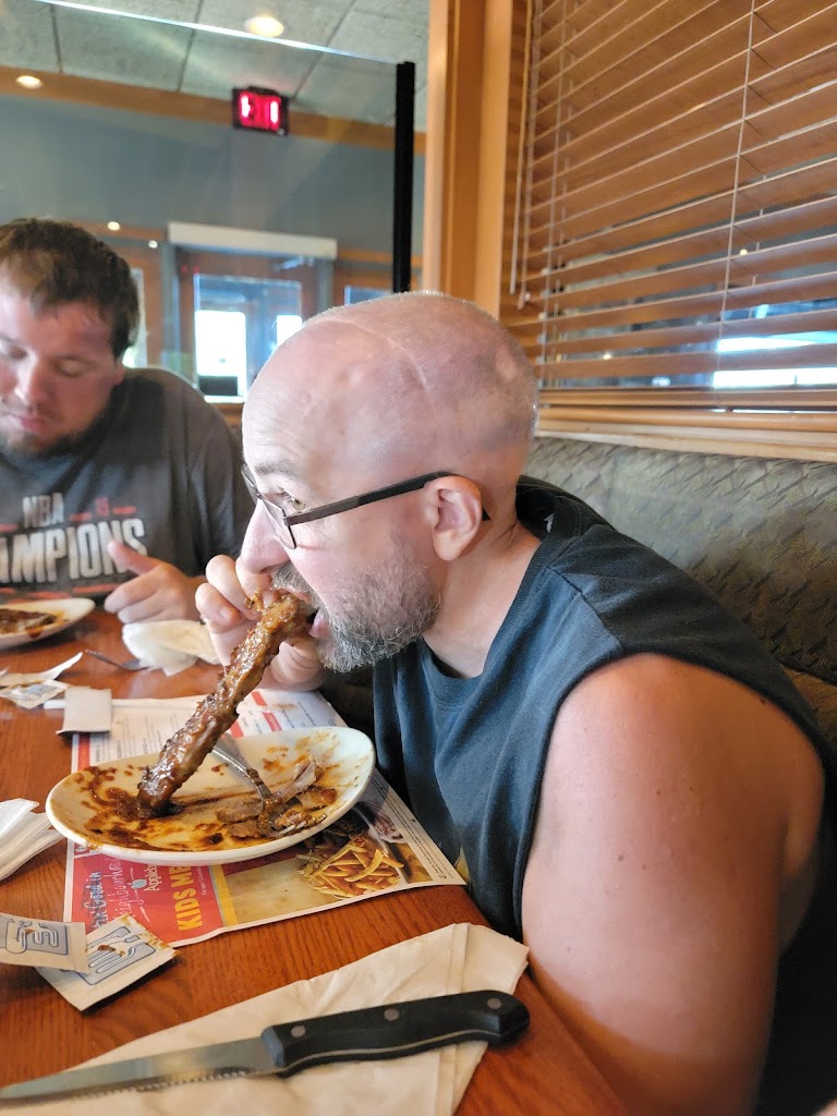 For the menu and value, this is my families go-to. For mid level chain. I like it better than Kelseys, East Sides, etc. For the money, the beef is passable, and the other items are very good. Of course, the riblets are legendary. The deep fried Pickle spears are the best I have ever had too. Parking: Easy free parking Kid-friendliness: Lots of kids. Everyone expects it. Full kids menu. Wheelchair accessibility: We have a friend who needs a WC, and we have been there a couple times, no issues.