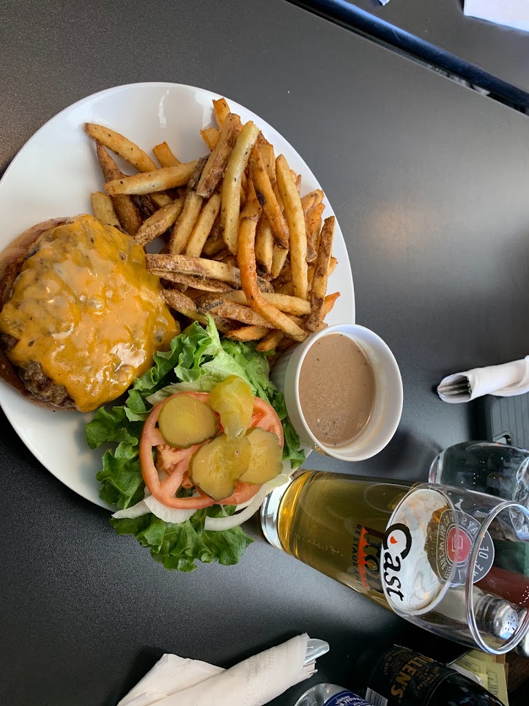 Hamburger was very good, substituted salad for fries and was charged an extra $6 not to happy about that. Waitress didnt mention that there was an up charge. $21 for just a burger and extra $6 for salad. Bit to much.