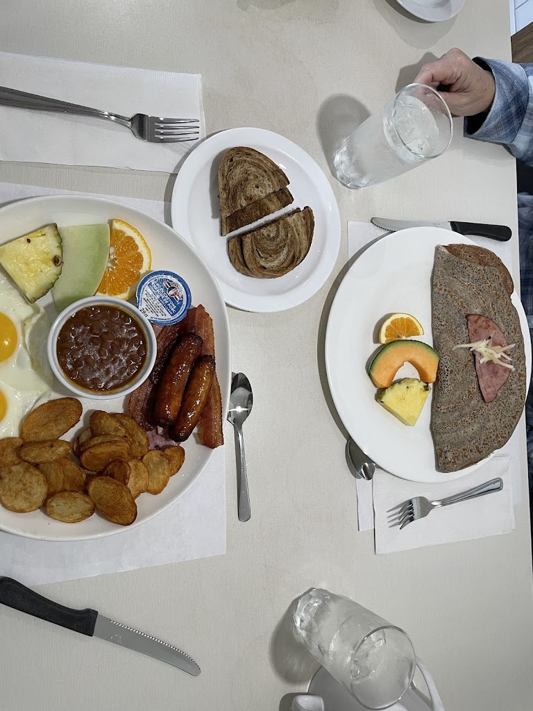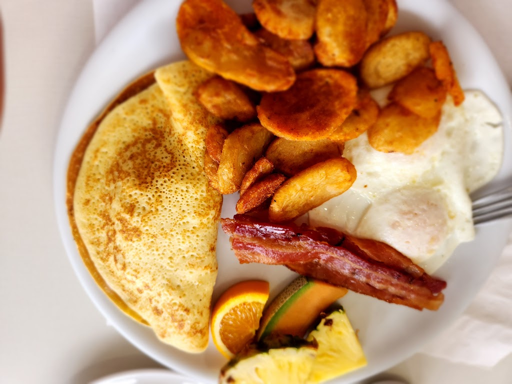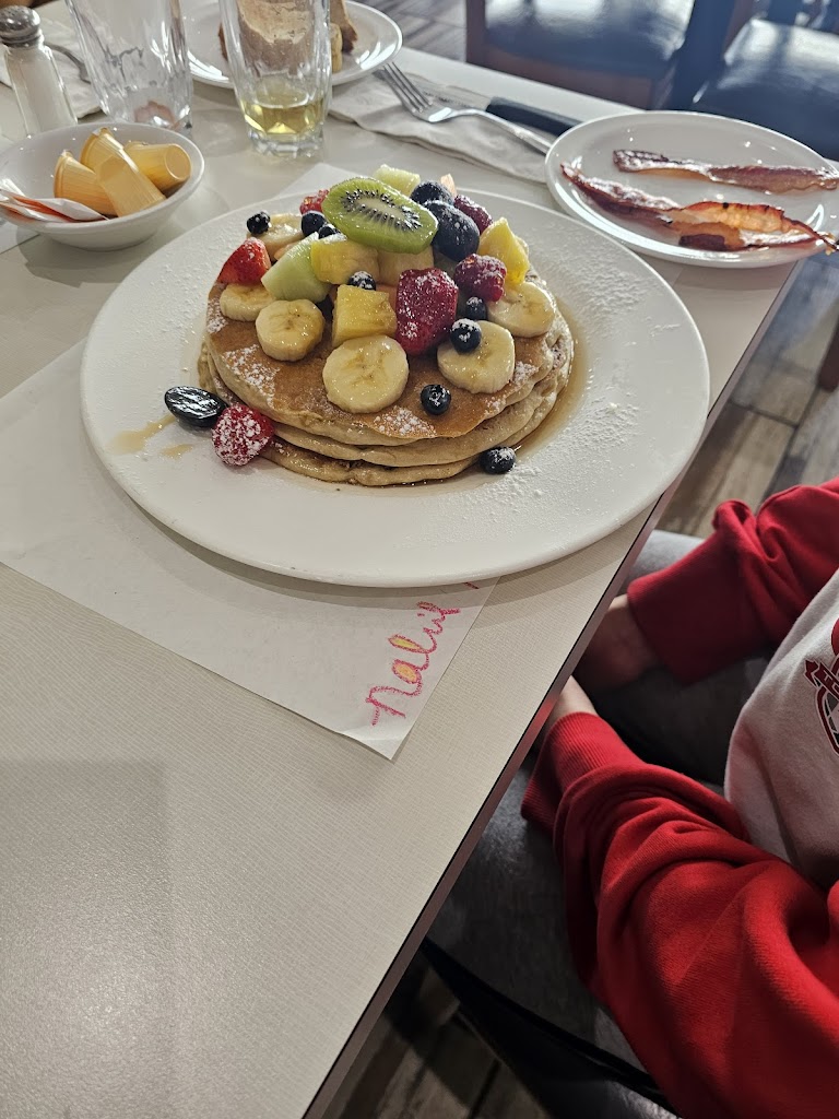 Love the fruit pancakes Dietary restrictions: Accommodates to the best of their ability with dietary restrictions Food : 5/5 |