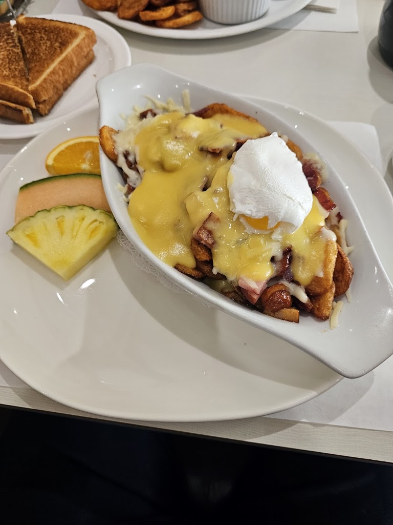 Worst Eggs Benedict i have ever had i was lucky if there was a teaspoon off hollandaise sauce on each of my poached eggs that were also over cooked. My husband ordered the clubhouse the toast was dry no mayo on the sandwich at all also not much lettuce or tomato either we were not impressed the service was also lacking when we got her attention i asked if she could get more hollandaise on my Benedict as they hardly had any on she said she would have to charge extra for some when my husband mentioned he did not get any mayo she brought him 1 small pack for his sandwich no apologies and she never came back to our table, we had to get the attention of another waitress to get our bill. This was our first visit not sure if there will be a second.