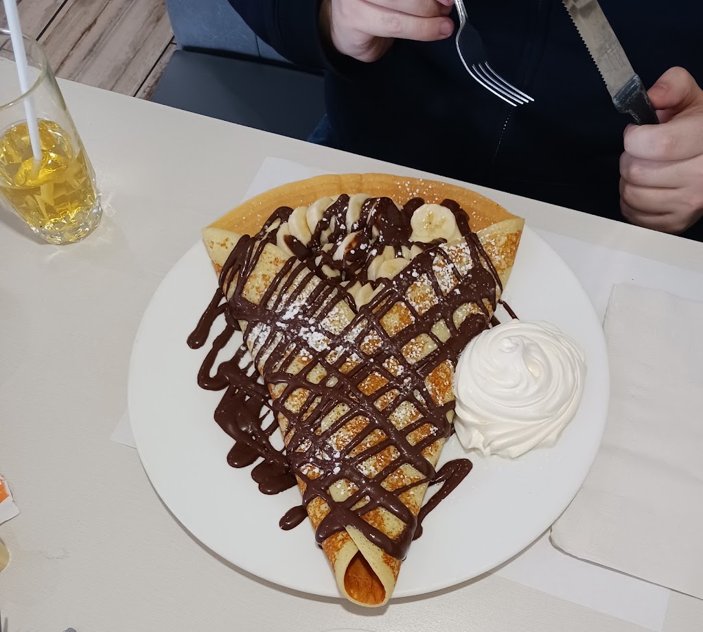 Nice place for breakfast/ brunch. You can find savoury, sweet, or a mix of both options on the menu. I got the strawberry & banana crepe with custard