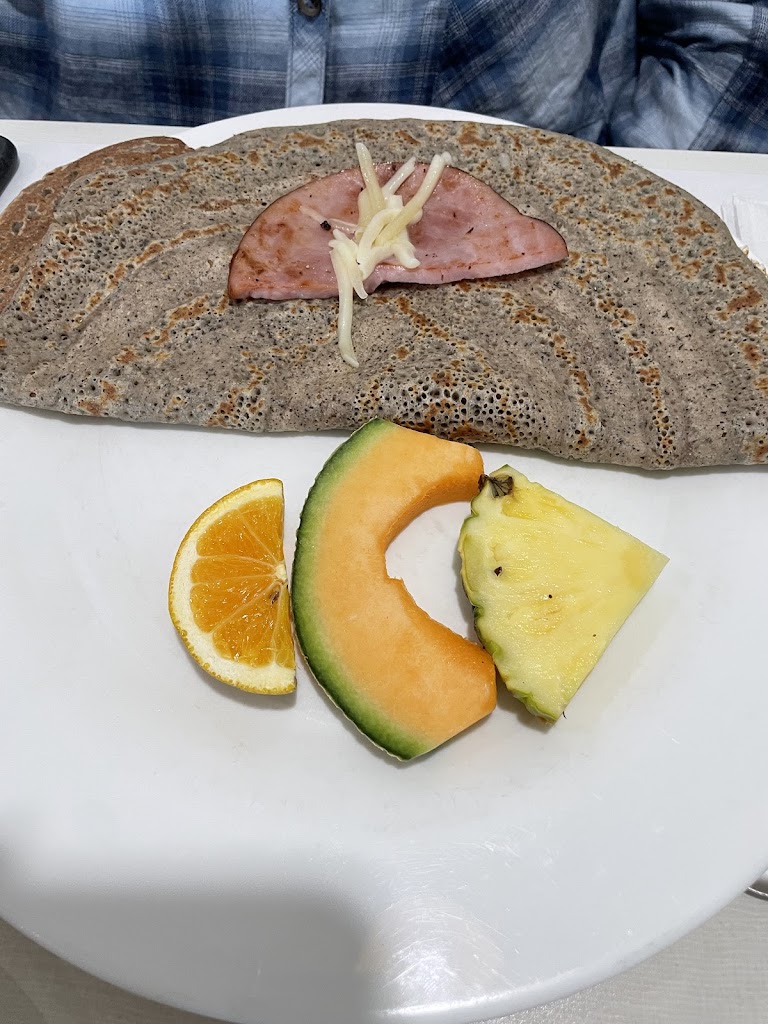 Highly recommend. This was recommended by a neighbour here in the area we are staying and we enjoyed our first visit so much we went back the next day. Proper espresso coffee (difficult to find for us coffee-mad Aussies) ensured our return. As did the great welcome and friendly service. Portions were large, the buckwheat crepe with Swiss cheese and ham a winner for me. All meals we chose came with fruit which was very welcome. They offer some really healthy choices too.