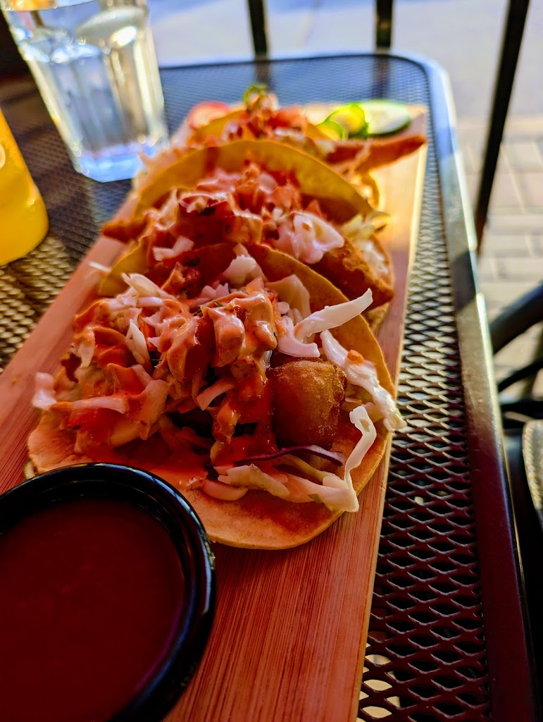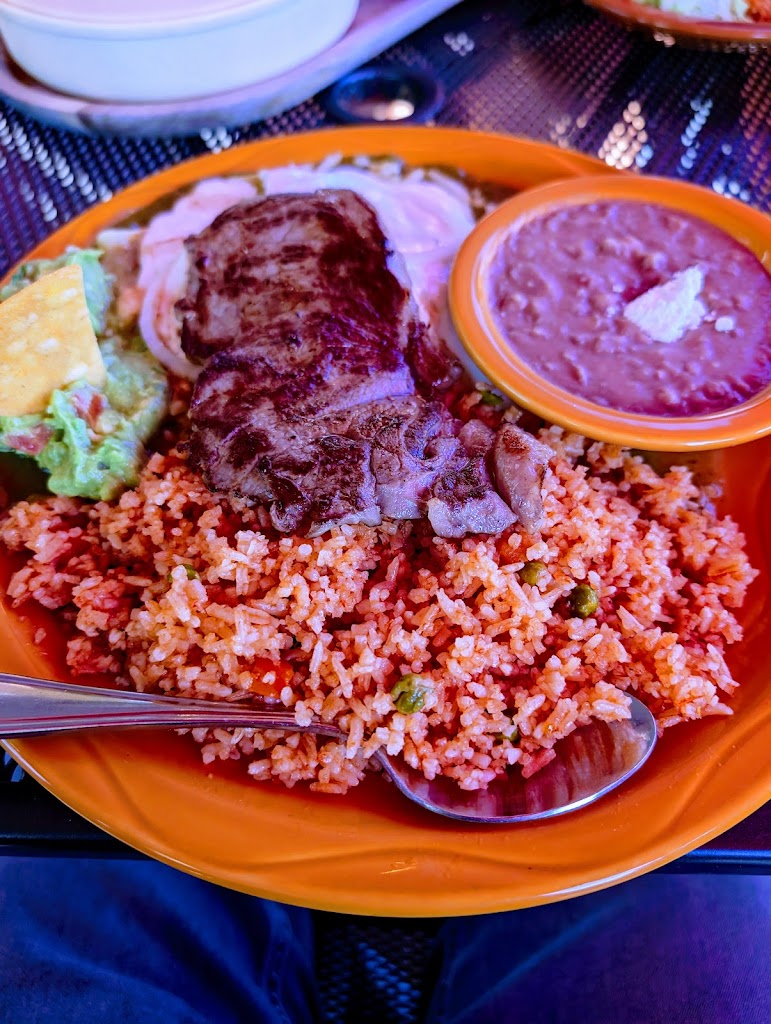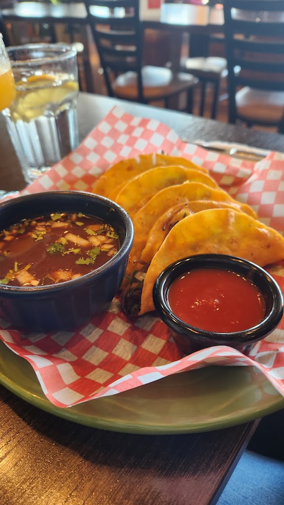 Such a great find! The front of the restaurant offers an inviting patio with bright red umbrellas and flowers. It was a little to himid for our visit to sit there but perhaps next time. The inside is decorated nicely and with Mexican vibes. The food was delicious and portions were plentiful. I am not a fan of spicy food and always a little wary of Mexican but they offer you choices and I didn't find the main dishes spicy, just their salsa even ordered mild. But that didn't make or break the meal as its on the side. We had the mango salsa with chips to start....I highly recommend! Myself I got the corn tortilla steak tacos. Yum! My husband had chicken and also just as delicious. We found 1 guc and 1 side of rice was substantially enough for us to share for our tacos. Atmosphere got a 4 only because it did seem to get very loud with other guests, the restaurant is very open. But nothing that would turn us away. We can't wait to return!