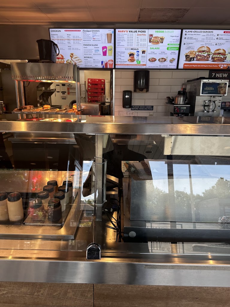 Harveys burgers are by far the best. They are the closest to home grilled burgers in taste and personalized toppings! This is a busy location on busy road.