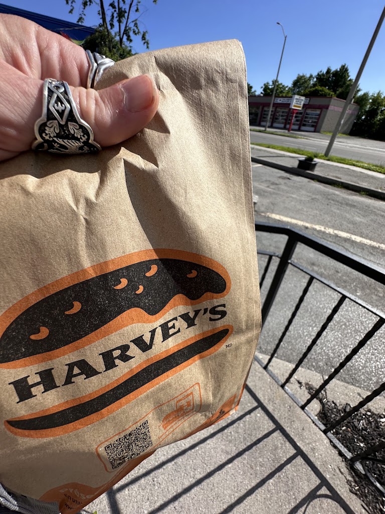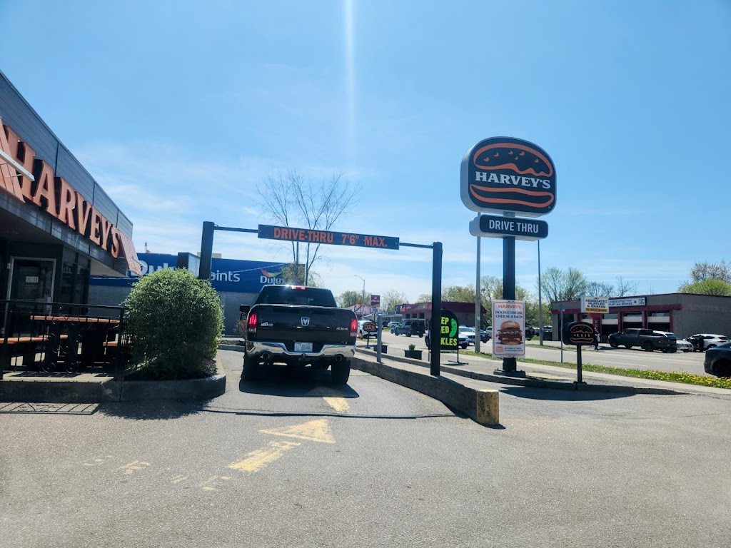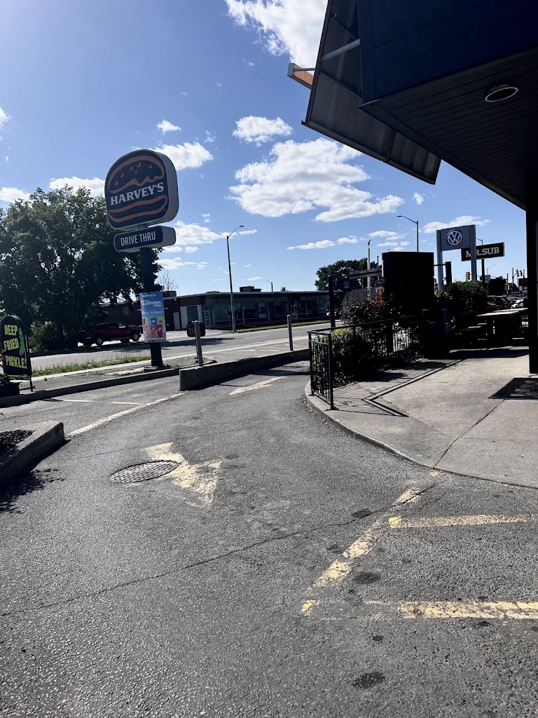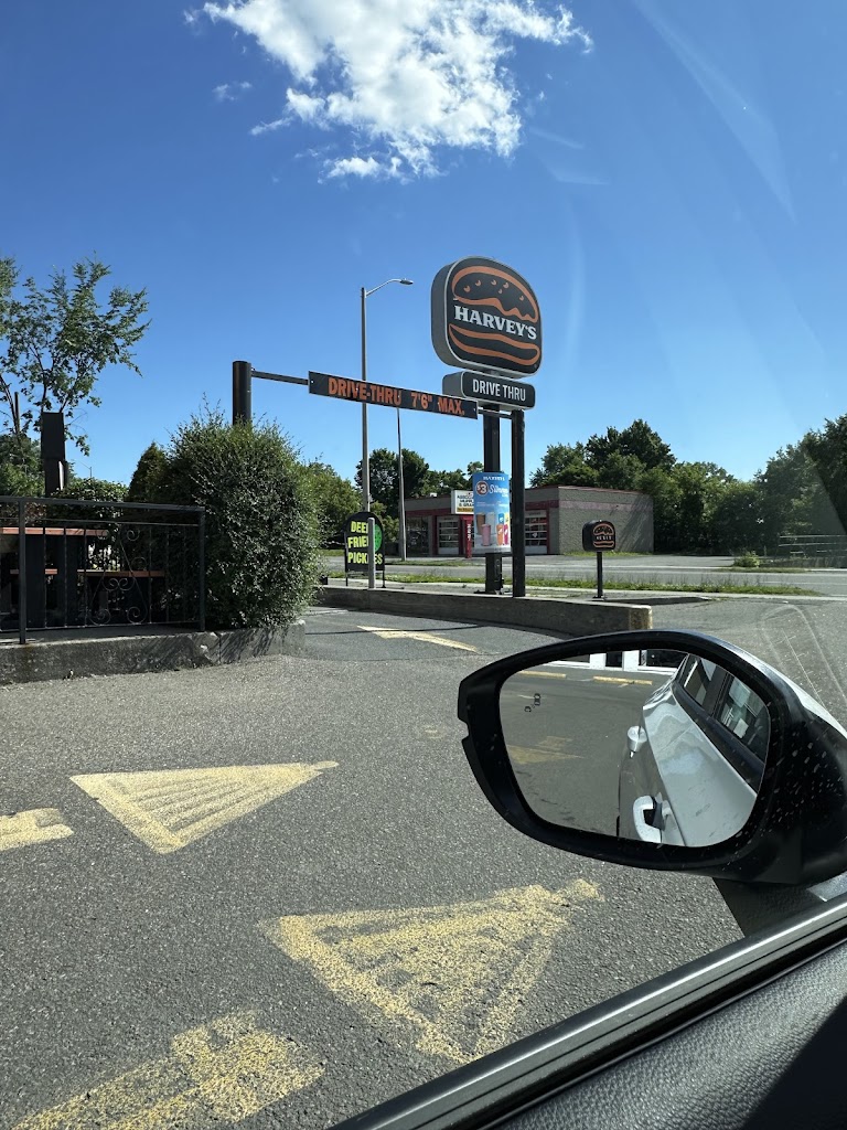 I stopped at Harvey's for a quick bite on a road trip and this franchise met my expectations for food quality and customer service. Getting in and out of the restaurant's parking lot can be a challenge as people who just get their food need to quickly round a sharp lefthand turn and merge into the parking lot driving area. I almost got hit by a guy looking at his food while driving so watch out for that If you like my reviews, photos or videos give them a Harvey's thumbs up.