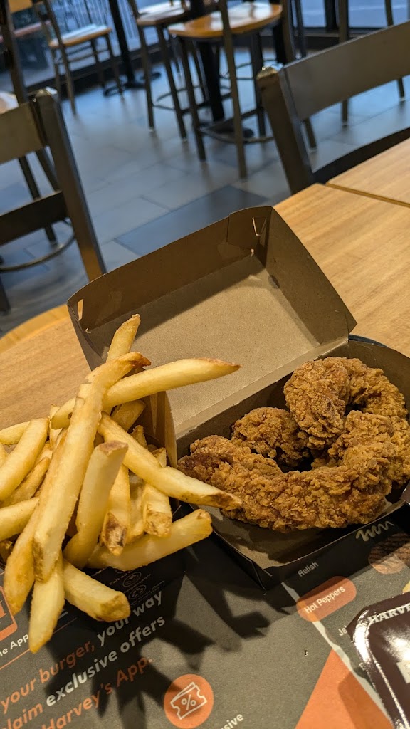Poutine was great! Chicken burger was a bit dry. Restaurant was clean and service was prompt. Harveys has switched to paper straws, so dont take too long to drink as the straw starts breaking down.