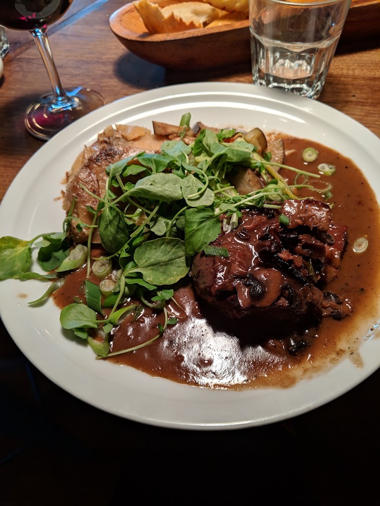 Really incredible culinary experience. The flavors are top notch. The server told me that they are known for their sauces, he wasn't wrong. Had a mushroom feuilleté to start and an onion soup and both were to die for. Really well executed with the kitchen open for all to see how they put it together. For the main we had the duck and the bison and both were cooked to perfection. Generous portions, well plated and constructed. Each bite was a hit.