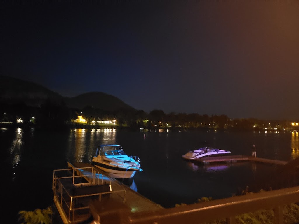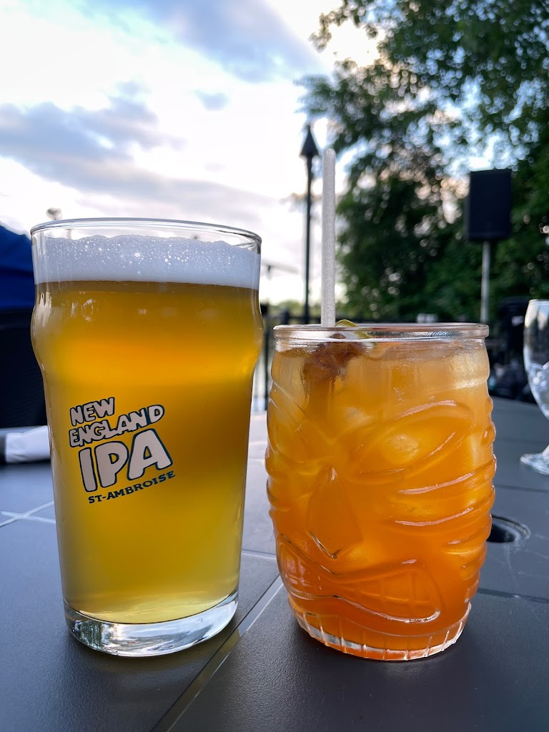 Super nice terrace with a view of Mont Saint-Hilaire. Good atmosphere with a music band!