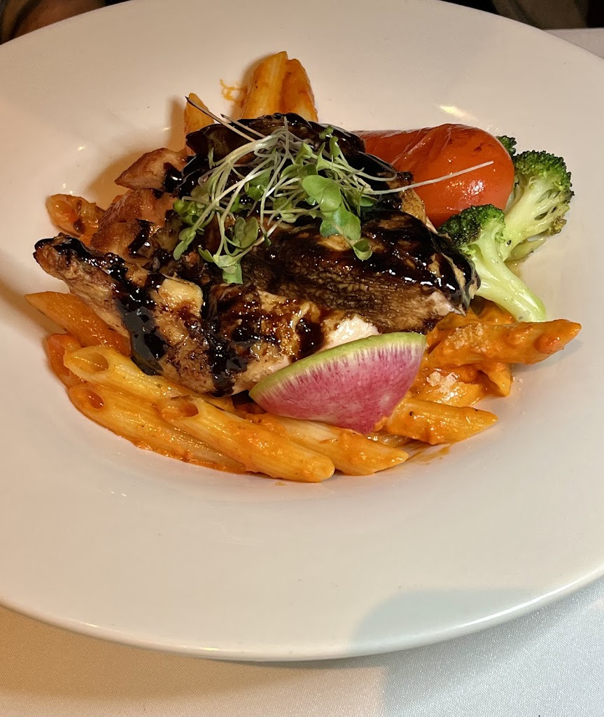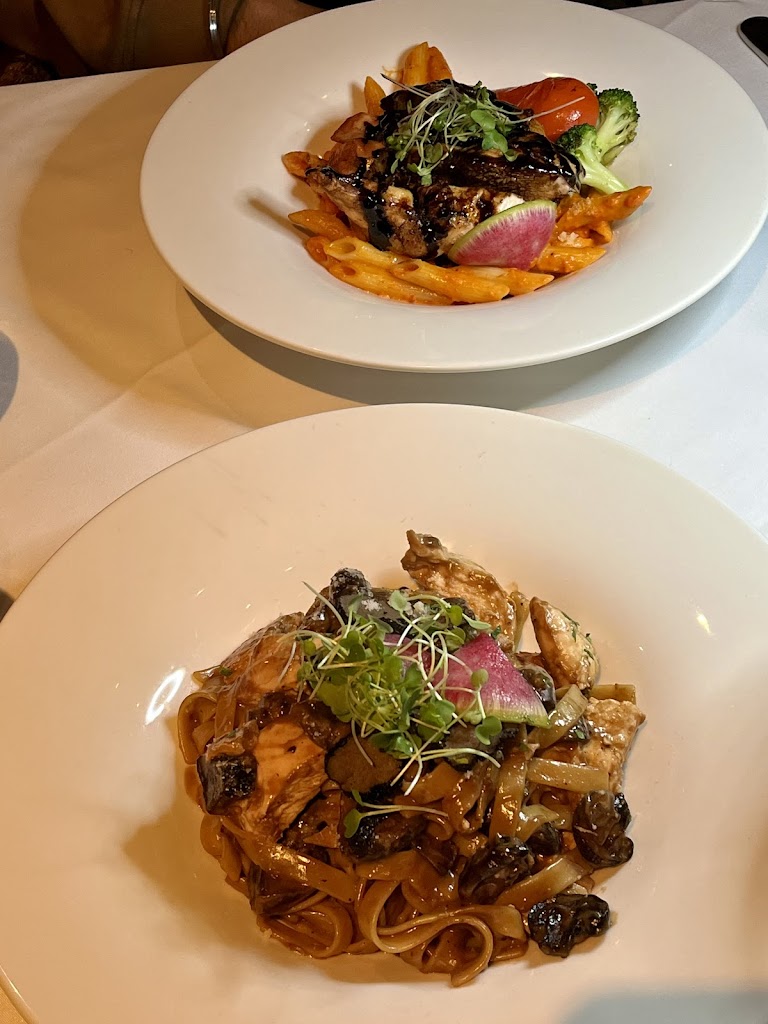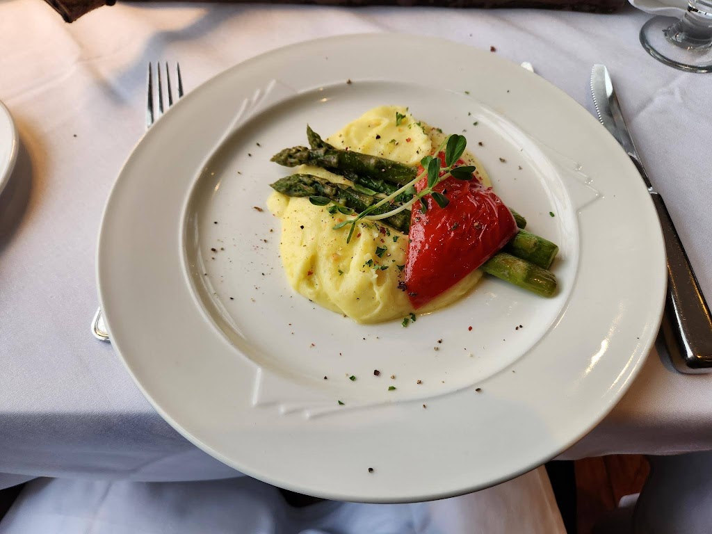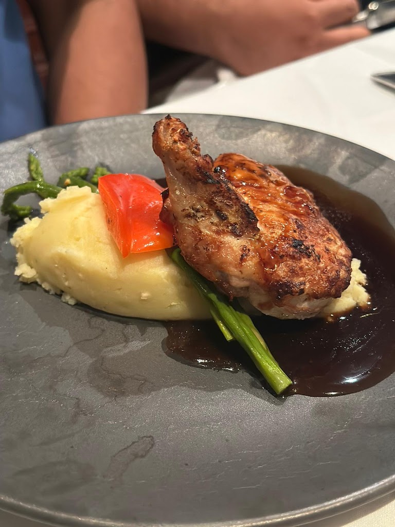 The entrée was good but the appetizers were amazing. Brie Portobello was amazing, Chicken supreme is good but I would prefer it if it was without bone but overall with mashed potatoes it was good. Vegetarian options: Vegetarian and vegan options are available. Parking: Free parking spots available.