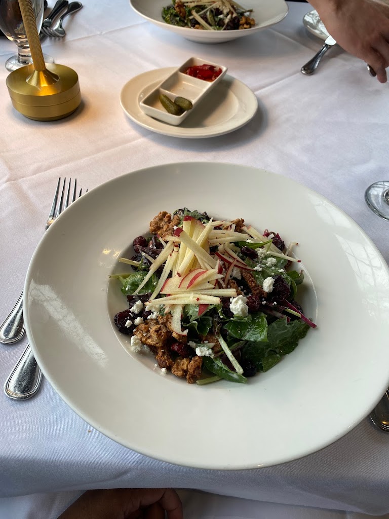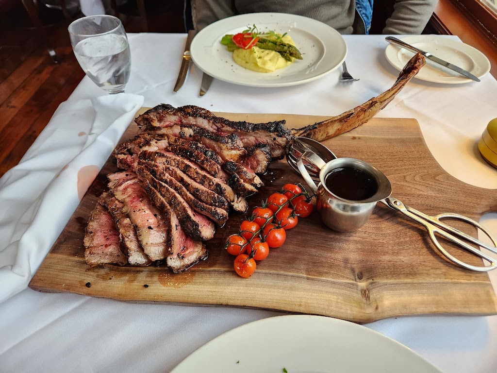 Stepping into Terrace on the Green, you're greeted by a vibe that's cozy yet classy, with its warm wood tones and soft lighting making you feel right at home. The place has a genuine charm to it, making it a perfect spot for a relaxed, yet upscale dining experience. The staff treats you like royalty from the get-go, making sure you're well taken care of without hovering too much. We kicked things off with the Terrace Salad, a fresh and vibrant starter. The mix of sweet nuts and fruits with the tangy feta and fresh greens was just right – a great opening act that set the bar high for what was to come. The main event was the Tomahawk Steak, and let me tell you, it lived up to the hype. Cooked perfectly medium rare, it was juicy, flavorful, and just melted in your mouth. The sides weren't just afterthoughts either; the roast potatoes were spot on, the mashed potatoes creamy and comforting, and the asparagus was surprisingly sweet – no bitterness at all. Ending on a high note, the molten lava cake was pure bliss. Just the right amount of gooey, it was a chocolate lover's dream come true. But what really made the night special was the feeling you got being there. Terrace on the Green has a way of making a meal feel like an occasion, thanks to its heartwarming setting and top-notch service. It’s the kind of place that reminds you why going out for dinner is so much more than just eating – it's about enjoying every moment. Which is great because now I have a place to host events from private dinners to large social gatherings with their well-appointed indoor and outdoor spaces.