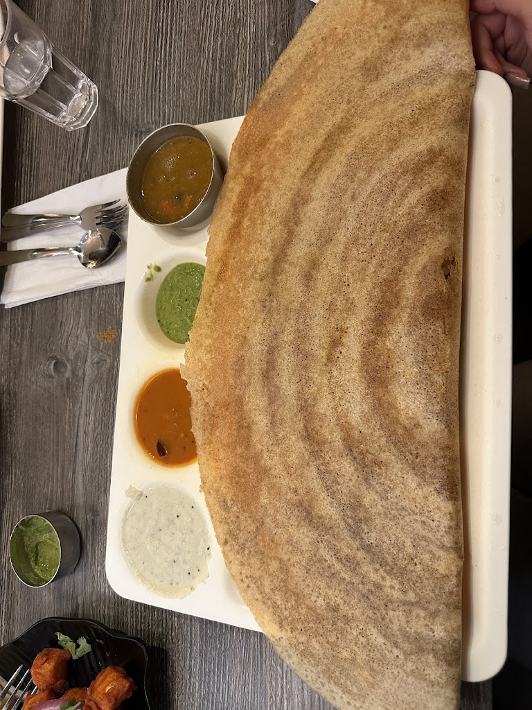 delicious dosa. enjoyed the food, service was super even though crowded because of weekend. Food
