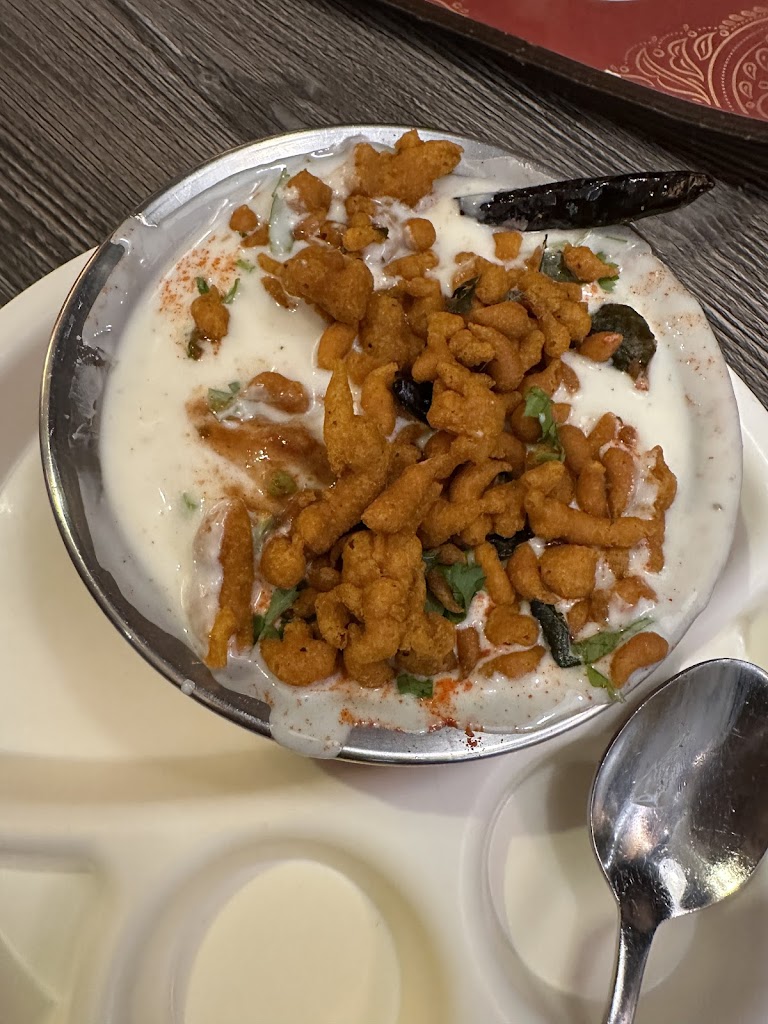 The place is always so crowded and the staff is always running around. After waiting for 15 mins with 6-7 groups before us we got our table. We have been there many times but never seen it crazy busy like that ever before. The menu offers a great variety—everything from crispy, golden-brown dosas and soft, fluffy idlis to flavorful sambars and chutneys bursting with freshness except for the green chutney tasted sour and off like curdled milk. I loved dahi vada with sweet and spicy flavours, rava masala dosa, with its perfectly spiced potato filling. Paneer 65 was not as I thought. It was just dry paneer pakora and had no tempering as mentioned on the menu. The ambiance is warm and inviting, with Mahabharata theme. The staff were attentive, but running around so much that they didn’t have time to check for customer satisfaction of their own but served well when called upon. If you’re craving South Indian cuisine or looking to try something new, you must visit but if you have no patience to wait or don’t like crowded restaurants then this is not the right place for you.