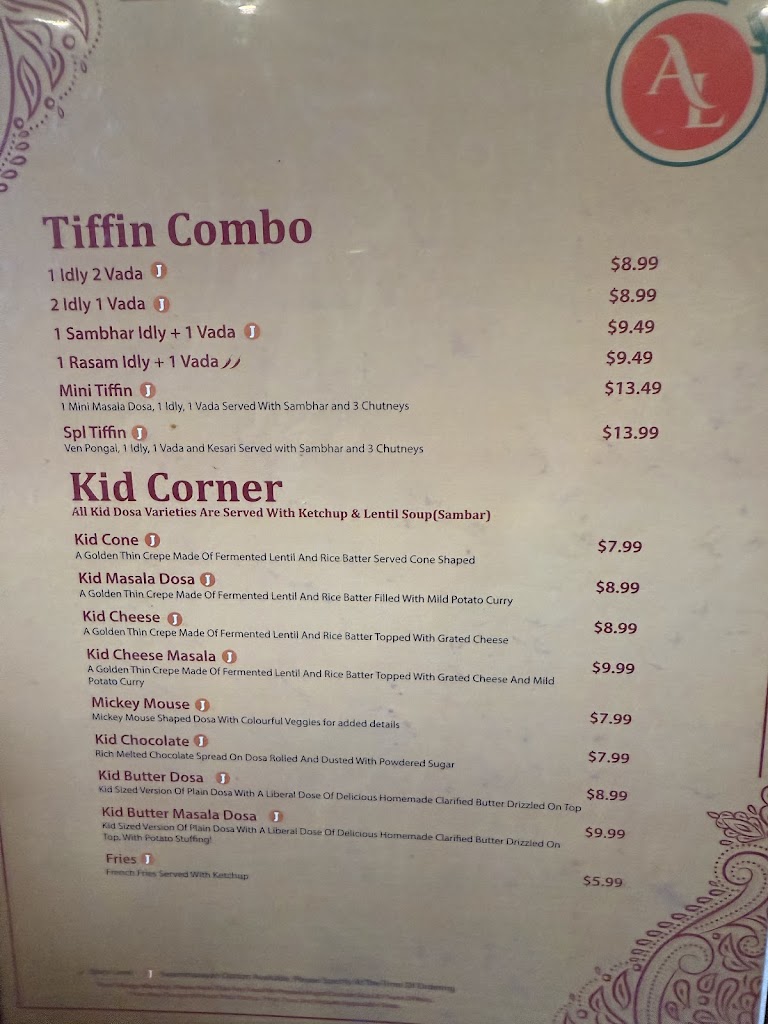 I ordered kids cheese dosa . Syiad helped me Staff performance is very good. Clean dining. I tried all dosa over there my favourite place to eat south indian food .everyone should go and try once.