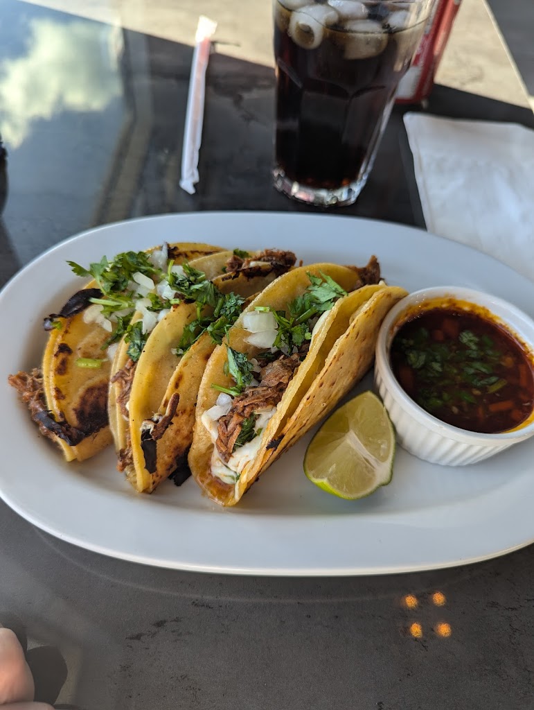 Great first time!! I was driving past the plaza and noticed this secret spot lol I heard of them all over social media and decided to order some Birria tacos and some Pork tacos and let me just say that they were soooooo good especially since it was my first time and I got it for take out and even when I got home they were still hot! The birria tacos had the biggest cheese pull I ve seen! Lol. The tacos were so delicious and I love that they make everything fresh!!! Definitely will be coming back.