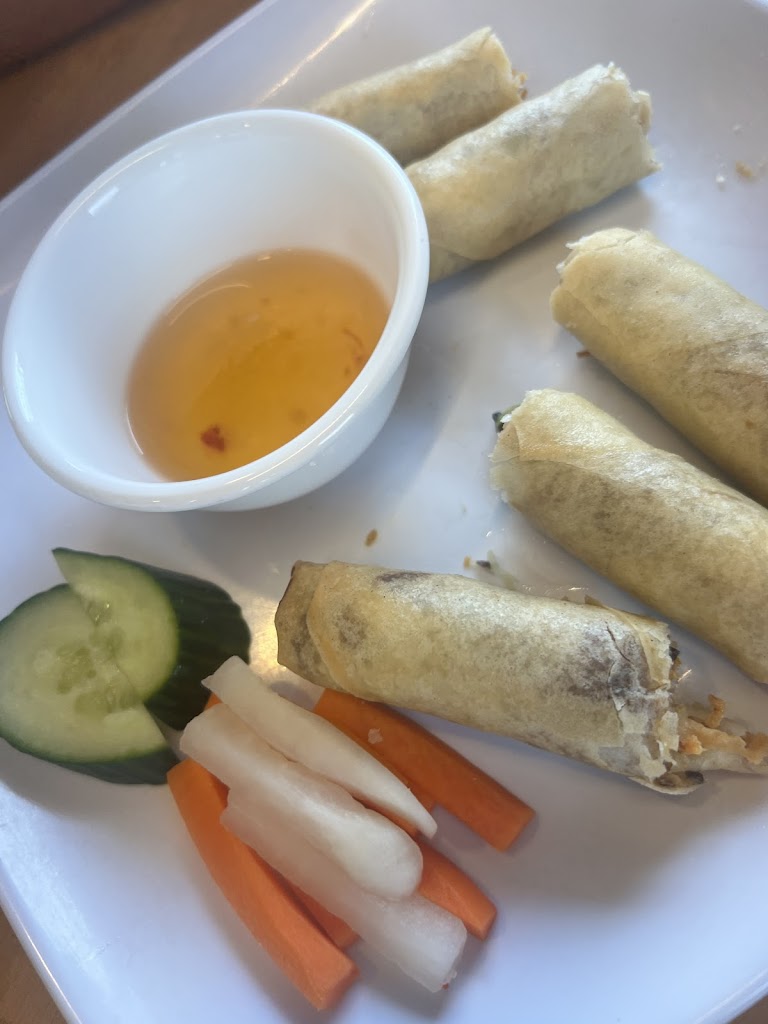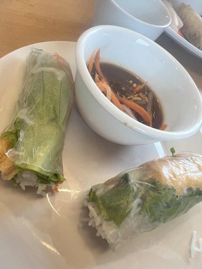 Food is incredibly tasty here, so if you have the chance, go! I did notice a huge change in portion size in the last year. The Pho used to come with a ton of veggies. In my most recent bowl, I got a very small handful of veggies (sliced carrots, book choy, broccoli, onion, celery and red pepper) I m talking 1 or two pieces of each I ordered the fresh rolls, they are so so yummy, I would recommend them! Keep in mind, you will get two thin rolls with 1.5 full shrimp in each (they are all sliced in half). The shrinkflation is very noticeable. I paid $25 for a pho and small fresh roll.