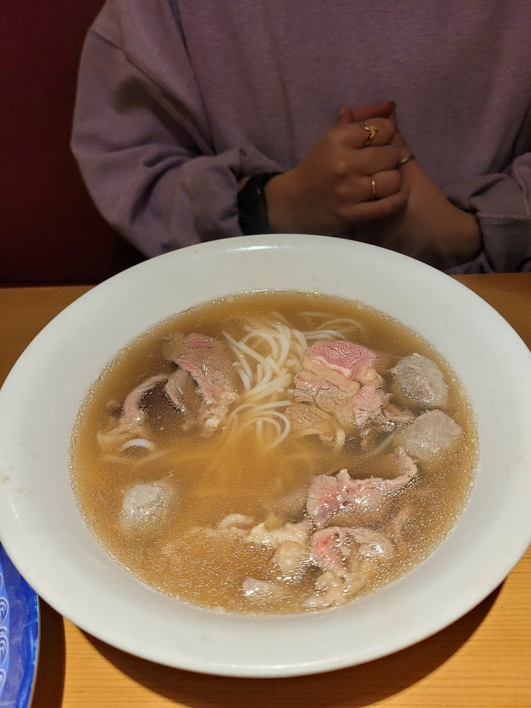 I had a really disappointing experience at this restaurant which just gave me the ick. First off, the server was unattentive and didnt ask if we needed any help with the menu. She had air pods in the entire time we were in the restaurant. I had to walk my order up to the front because she was nowhere to be seen. She obviously had a cold because she was openly coughing as she got cups for our tea. She wasnt even making an attempt to cover her mouth. I witnessed this several times. She did the same when she was handling our cutlery. I got an assorted beef pho, which I was excited for. Unfortunately, I bit into a beef meatball which tasted rancid. Knowing that it was sitting in the broth, I couldnt even eat my dish. The server never came to check on us. When I went up to pay, frustrated, I explained that I couldnt eat my dish. I never expected her to take any money off the bill; however, I wasnt expecting the response I got. She started questioning if Ive ever had pho. When I said yes, Ive eaten it a lot, she asked me if Ive eaten it recently. She didnt even offer a feigned apology or offer to make a correction. I wasnt going to leave a review about my experience until I got this reaction from her, where she basically said I didnt know what I was talking about. In fairness, my wife enjoyed her vegetable pho.