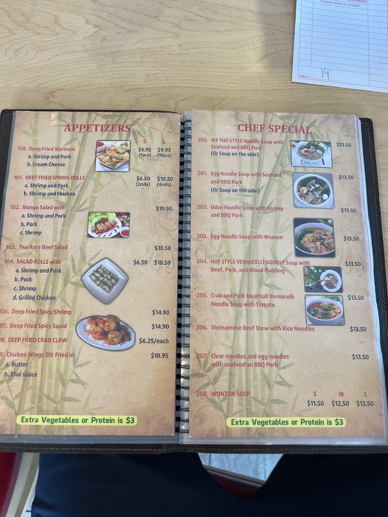 Honestly, has become mine and my girlfriend s go to restaurant. The food is absolutely amazing. The pho is obviously delicious but also make sure to grab an order of spring rolls and deep fried wontons because you can t miss out on those. Not only is the food great but the staff is very friendly. (If you forget your glasses they will have them ready for you at the front when you walk back in)