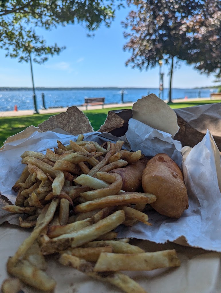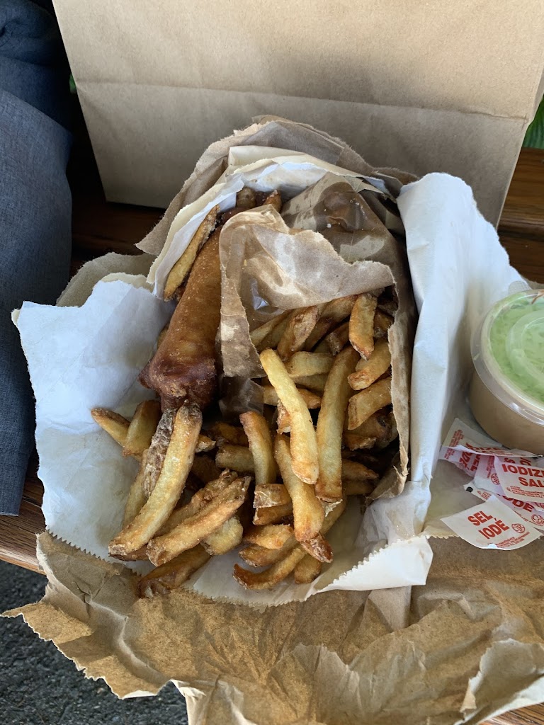 Fresh fish with the perfect amount of batter and delicious fries! Very well-priced for the quality of food. Only a couple min walk to the water where there are plenty of benches and picnic tables to enjoy your meal