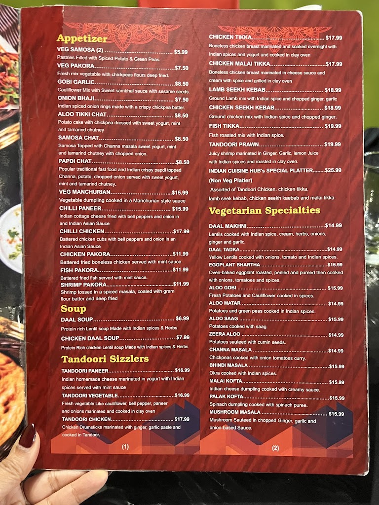 I love the food at Indian Cuisine Hub!! The buttered chicken and Naan is so delicious, and the staff there are simply wonderful. I absolutely recommend eating in or taking out!