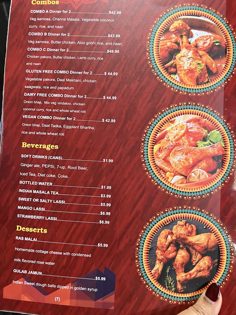 My wife and I tried this restaurant for takeout and they had a very cool dining area. The food was full off flavour and the chicken chunks were delicious the butter chicken!!! Vegetarian options: Vegetarian dishes available